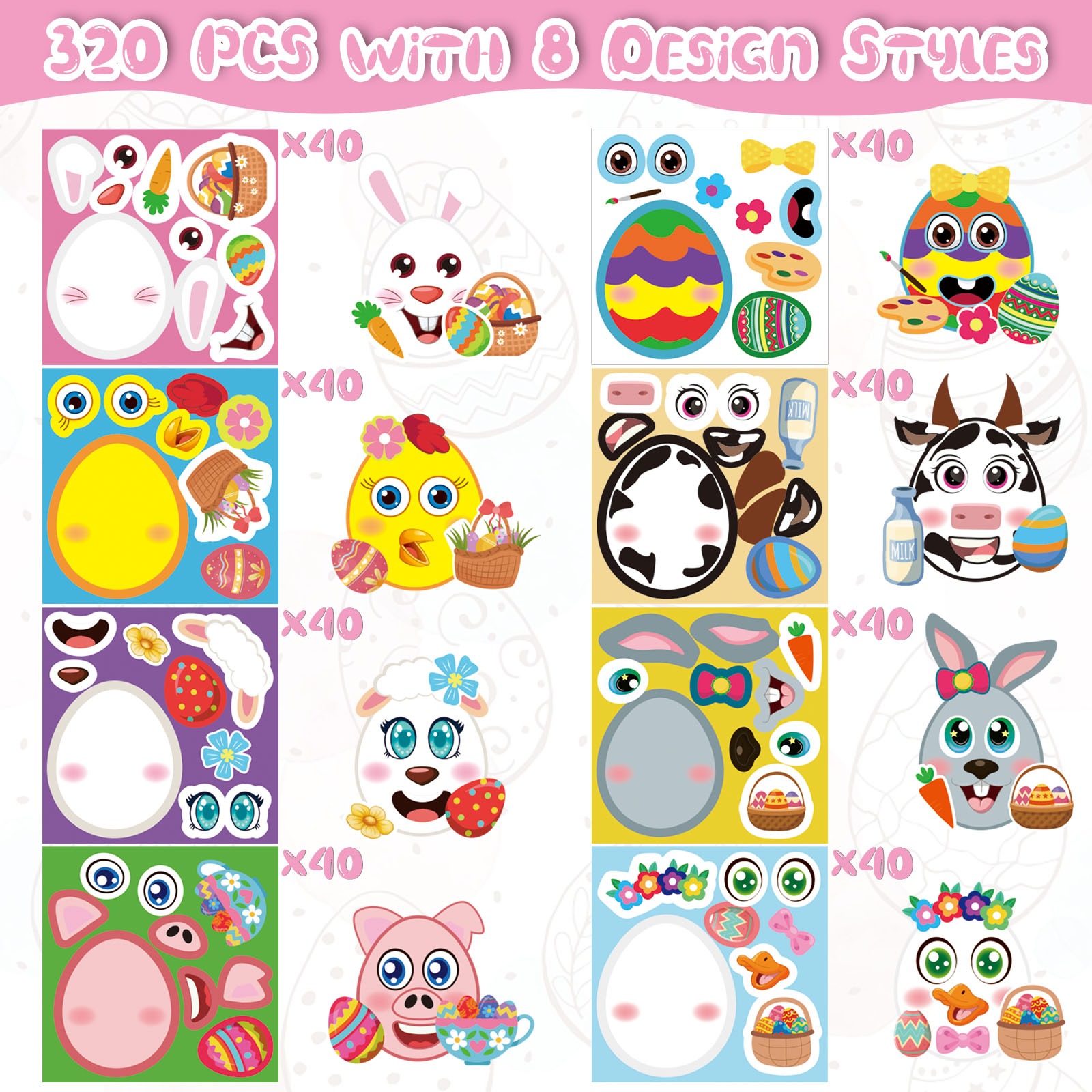 320 Easter Egg Animal Stickers Make Your Own Easter Egg Face Stickers DIY Easter Basket Stuffing Game School Goody Bag Reward Party Favor Supply