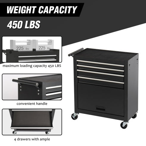 Product Name:4-Drawer Rolling Tool Chest, Cabinet with 4 Wheels Tool Chest with Drawers, Suitable for Garages, Warehouses, Workshops, Repair Shops, Black