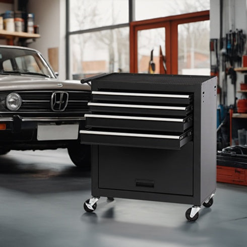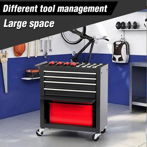 - Drawer: Equipped with four smooth-opening drawers, the tool chest with drawers is designed for easy access and organization. The drawers accommodate tools, folders, and other essentials