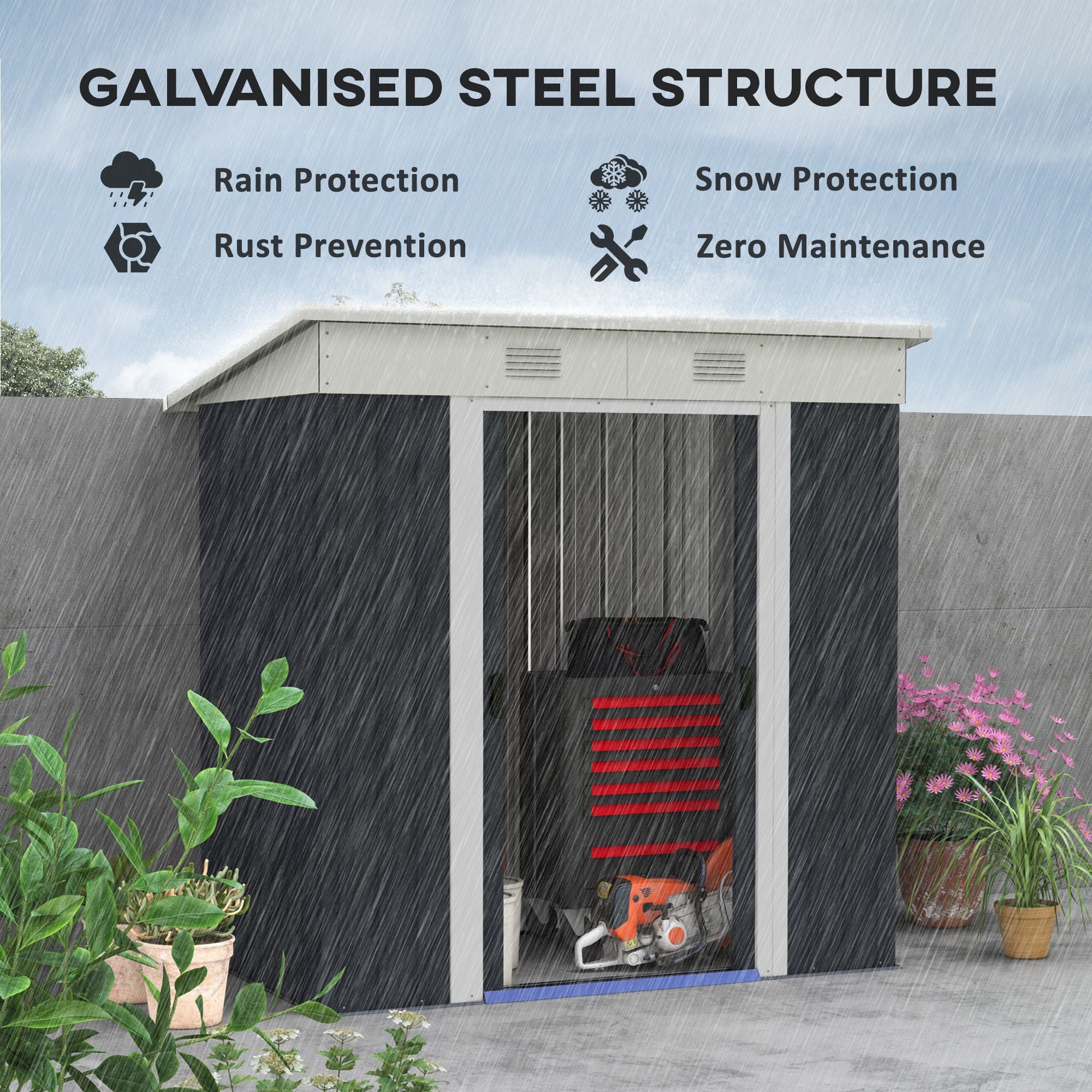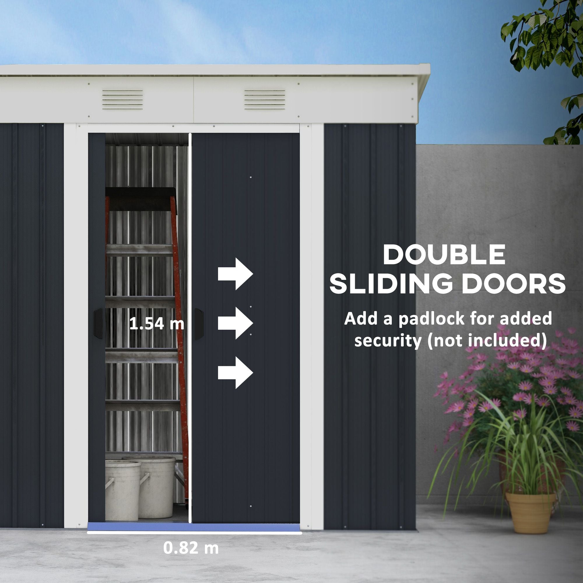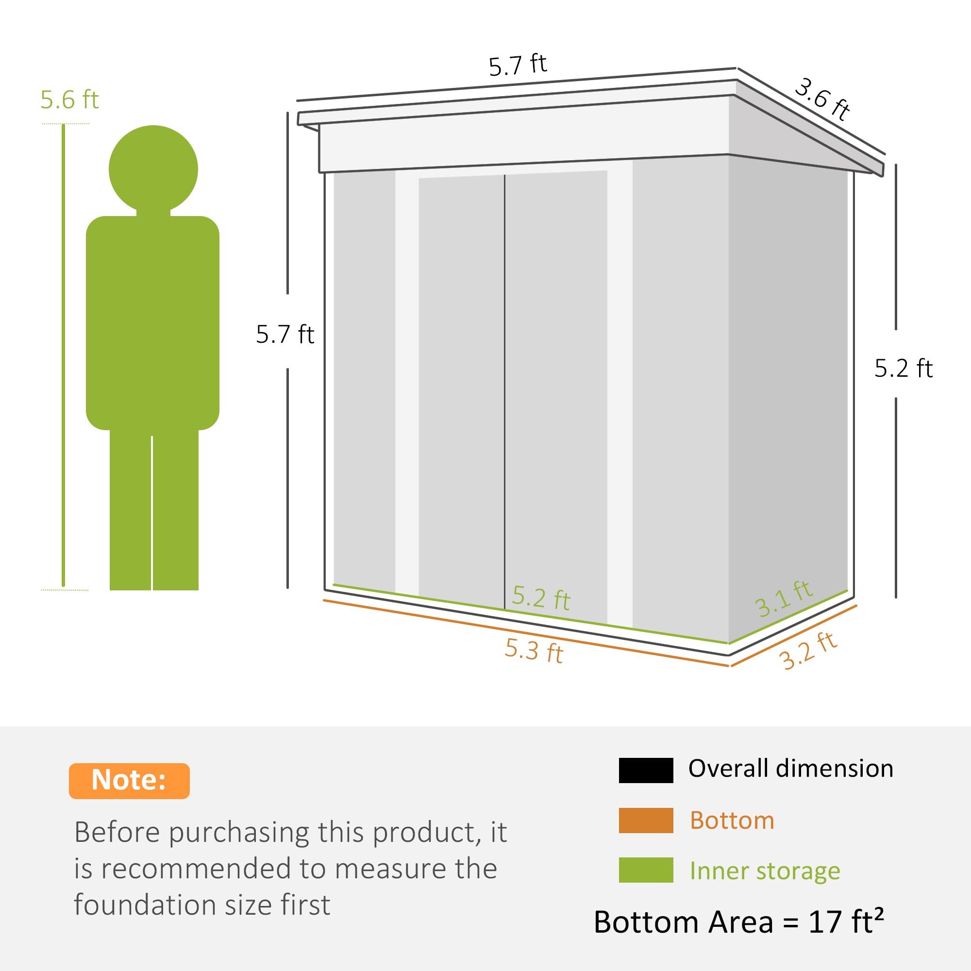 Bring storage space and value to your yard with an Outsunny metal storage shed. Our metal shed is made of galvanized steel, giving it advantages over wooden sheds. Our metal tool shed is easy to set up, withstands weather each season, and avoids issues with fire. The large double doors of our storage shed can roll in a bike or roll out a lawn mower, locking shut when you're done for safe tool storage. With a supportive lean-to design, Outsunny metal storage sheds optimize the way you organize.