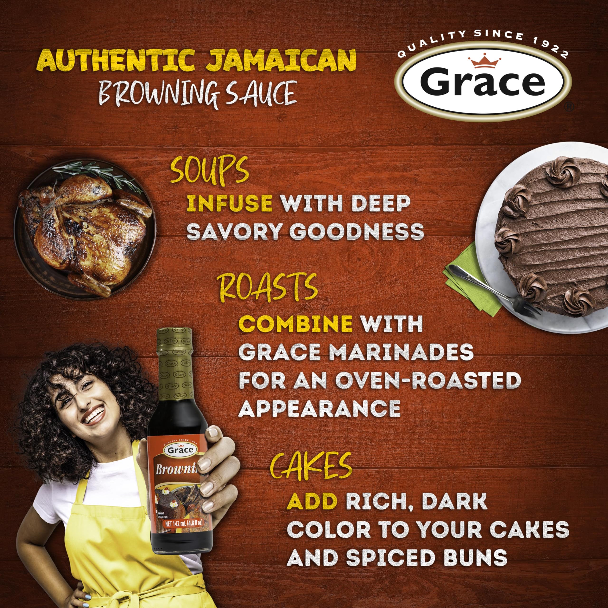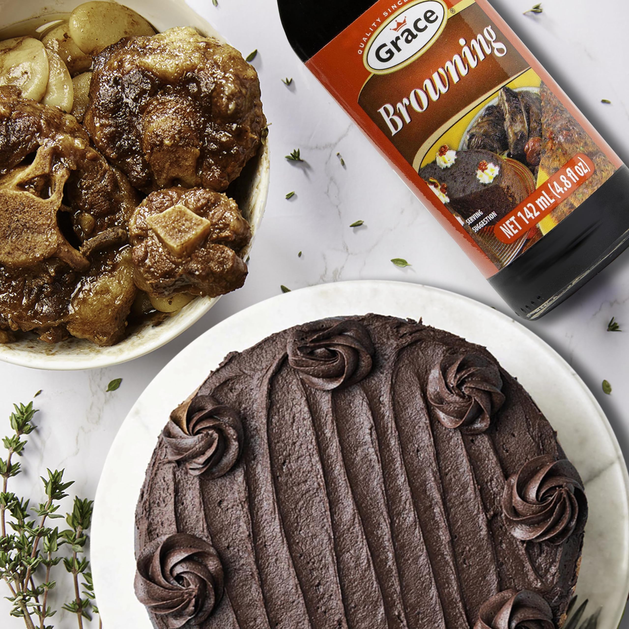 🥄Infuse your meals with the soul of Jamaica using Grace Browning Sauce! Add Caribbean flair to meats stews & cakes with its rich deep flavor. Bring the island's gourmet magic to your table - Grace is your gateway to Jamaican Seasonings for cooking. 🍖Transform your grill with our Jamaican Browning Sauce! Brush our brown gravy on beef, poultry, & oxtail meat fresh for a caramelized crust & authentic Jamaican sizzle. Elevate your BBQ with this Caribbean secret. Use it as a vegetarian gravy too!. 🍯Master your desserts with Grace Gravy Browning and Seasoning Sauce! Infuse your baking with rich, caramel tones for an unforgettable flavor. Our sauce lets you create beautifully colored, exotic treats like Jamaican spice bun & Jamaican black cake.. 🔥Crafted from caramelized sugar and spices, traditional Jamaican Browning Seasoning is a culinary art. Grace Browning captures this essence, embodying the flavor and heritage of Jamaica in every bottle. Trust Grace to bring tradition to your table!. 💯Grace Jamaican Browning Suace is crafted by Grace Foods a cornerstone of Jamaica's culinary scene for over 100 years. Its not a gravy sauce; its a piece of Jamaican history from a brand that has been a staple in Jamaican households for generations