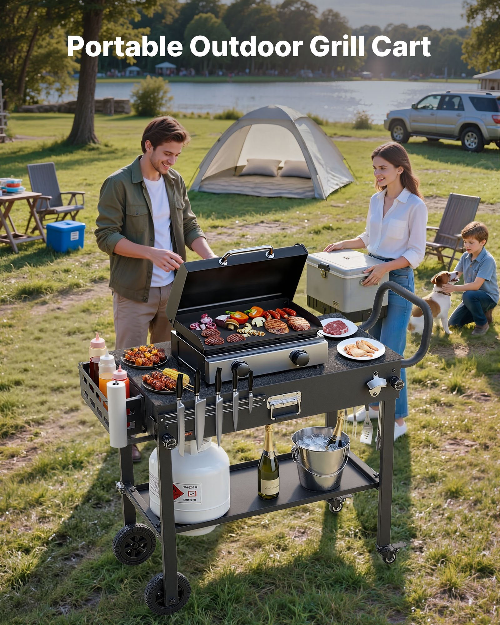 Wide Work Surface: Built for outdoor cooking, the flattop grill cart provides a 31 x 17 inch/787 x 432mm surface... Read more