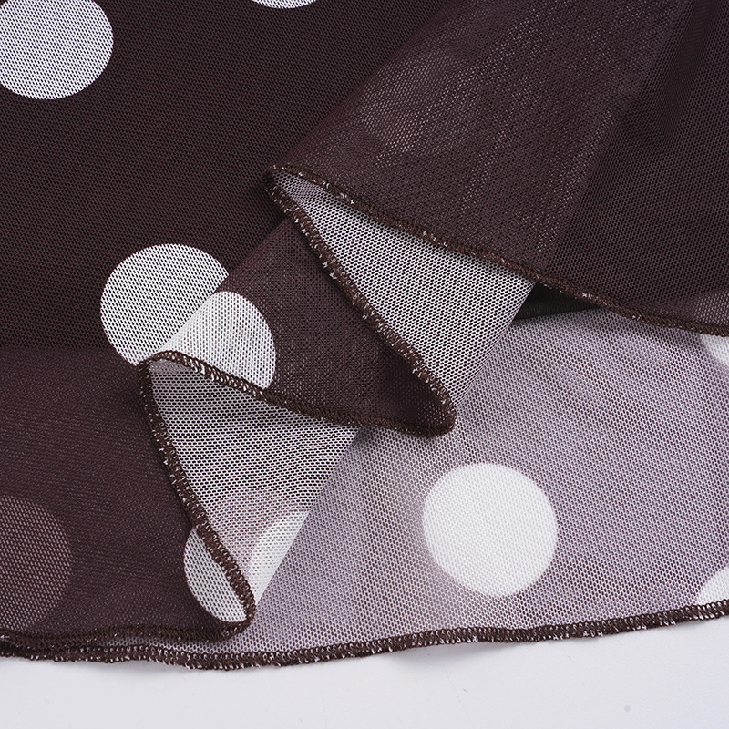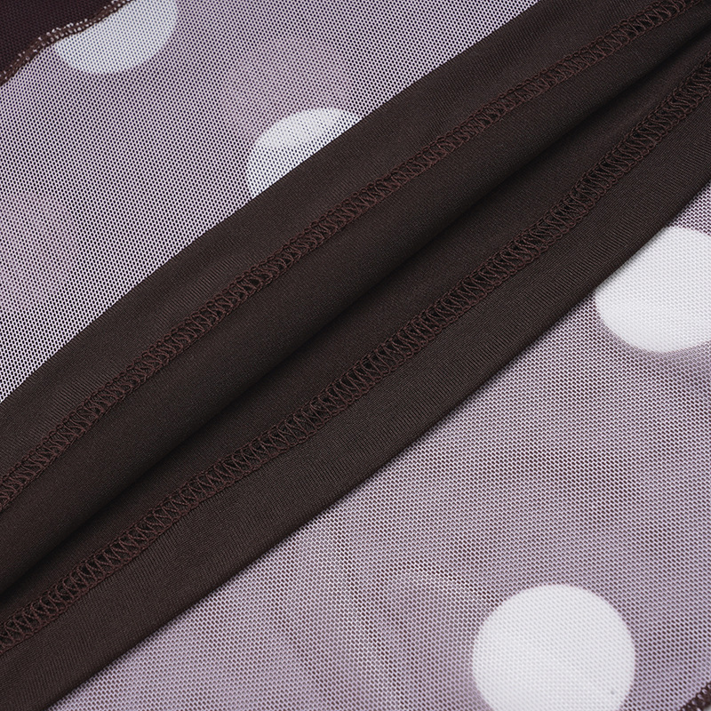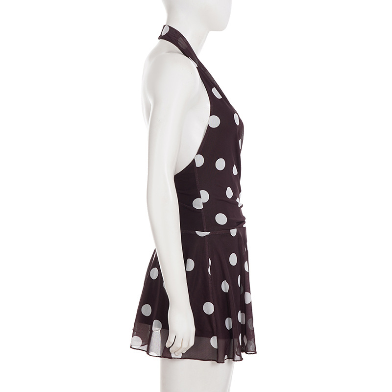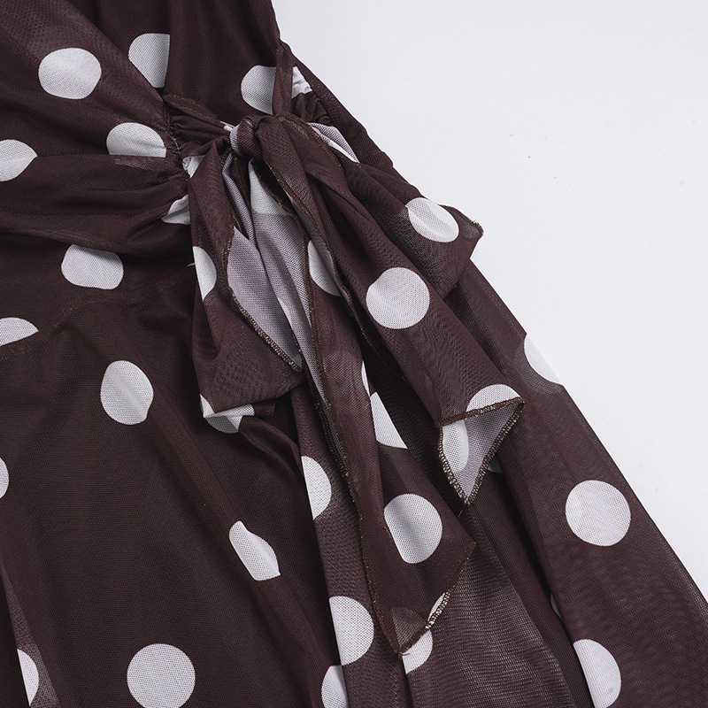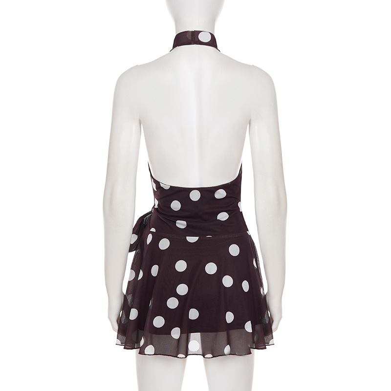 Retro Polka Dot Deep V Plunge neck Mesh Camisole Dress Vacation Lace up Backless Sexy Dress