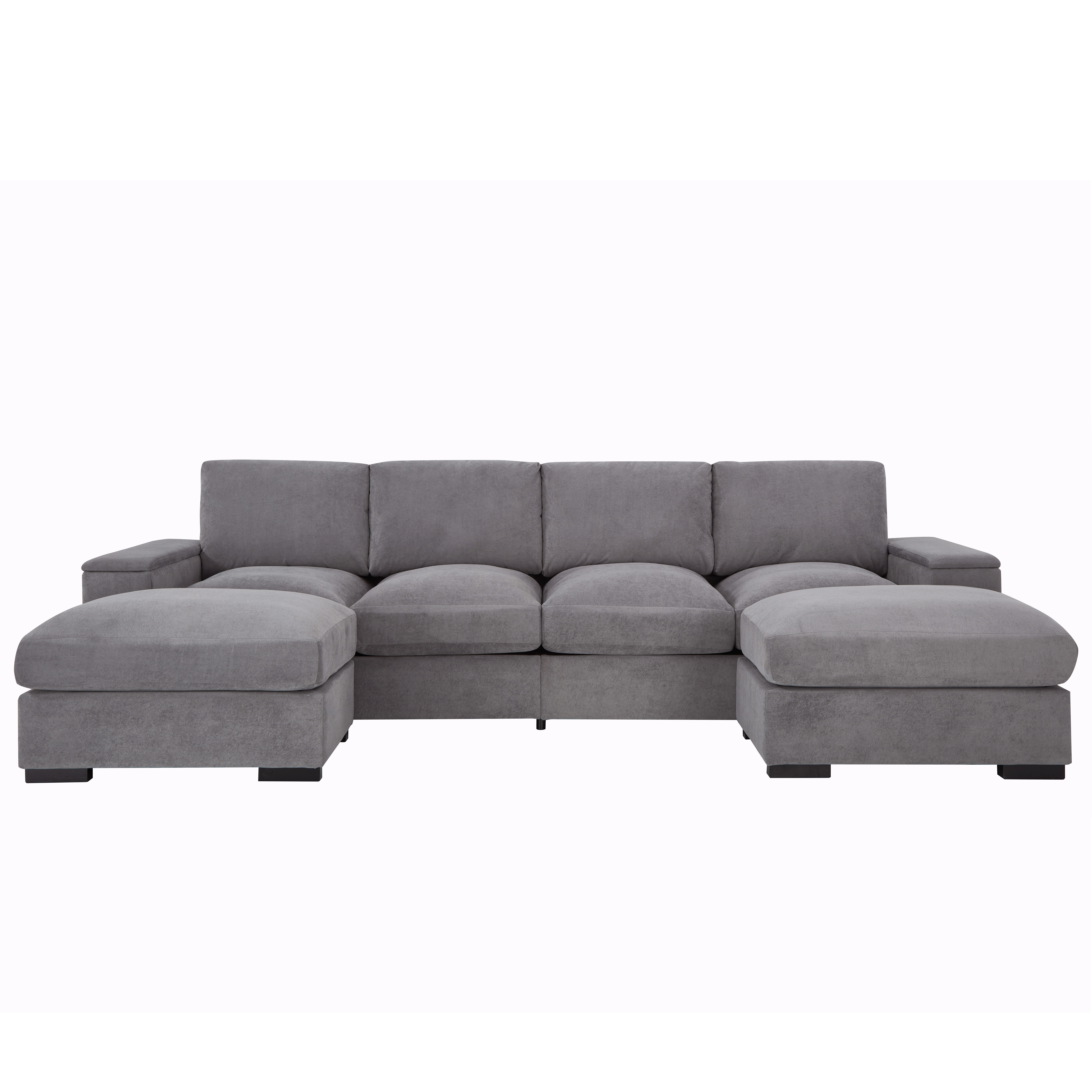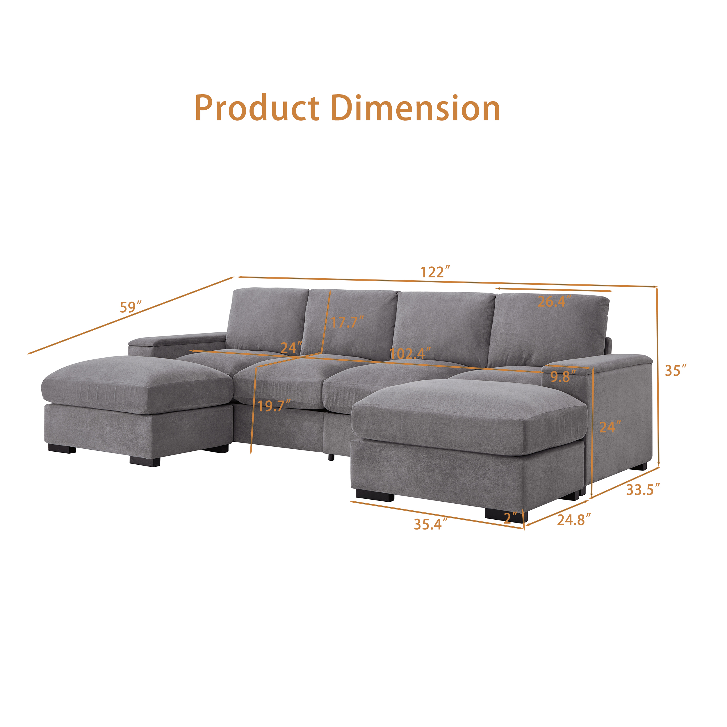 Product Name:Sectional Sofa Deep Seat Sofa Couch with Ottomans, Corduroy Sofa Sleeper Comfy Upholstered Furniture for Living Room, Apartment, Office, (4-Seat & 2-Ottoman,GRAY)