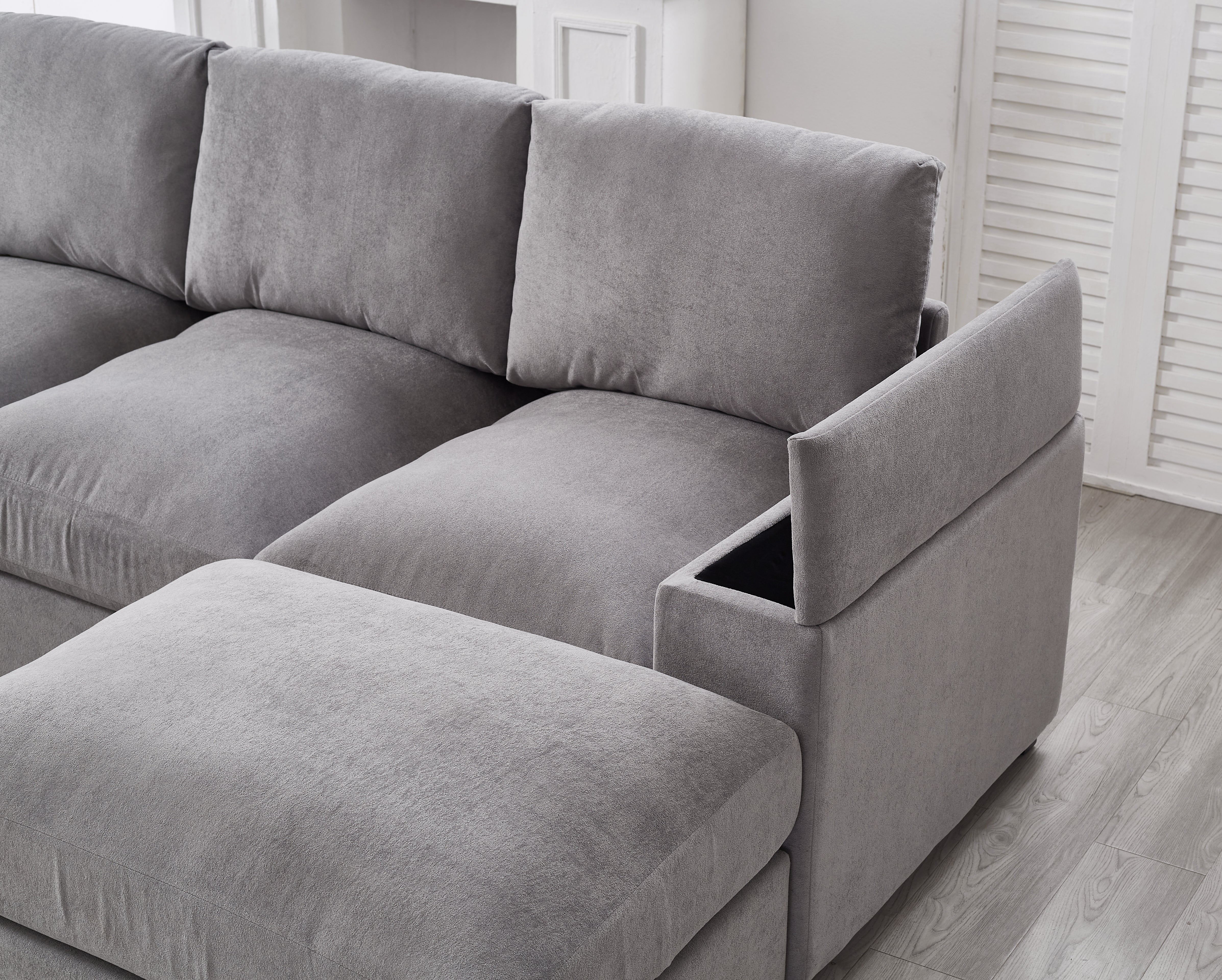 - Movable Ottoman: The sectional couch is composed of a 4 seat sofa and 2 movable ottoman. Ottomans can be connected to the 4 seat sofa by connecting pieces to form a U shaped sofa. Ottomans can also be placed individually according to your needs.