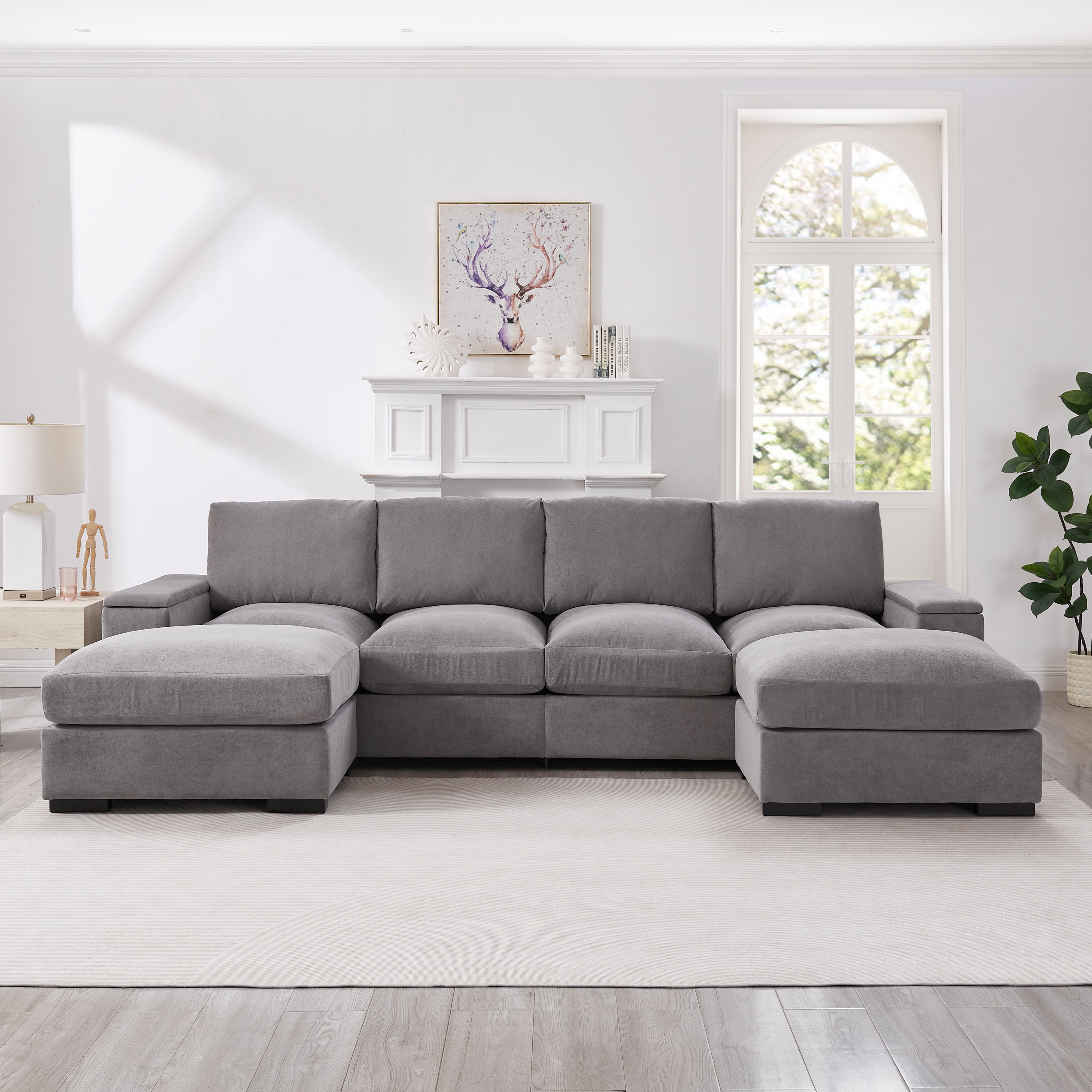 - Spacious Sofa: This u shaped sectional sofa is made with a sturdy solid wood frame and cushions filled with high-density sponge and wrapped in corduroy fabric.