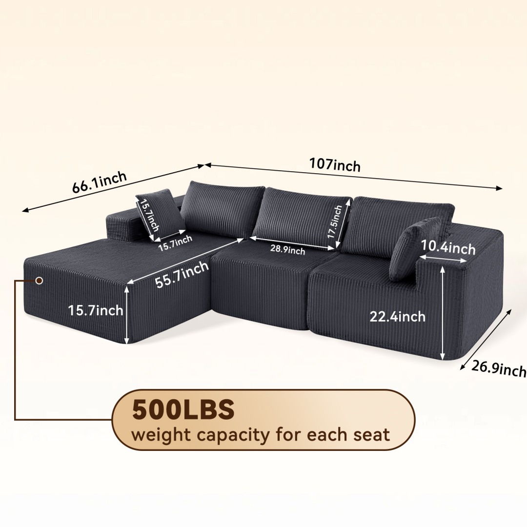 108-inch Modular Combination Sofa, Modern Modular L-shaped Sofa With A Lounge Chair, Upholstered Boneless Sofa