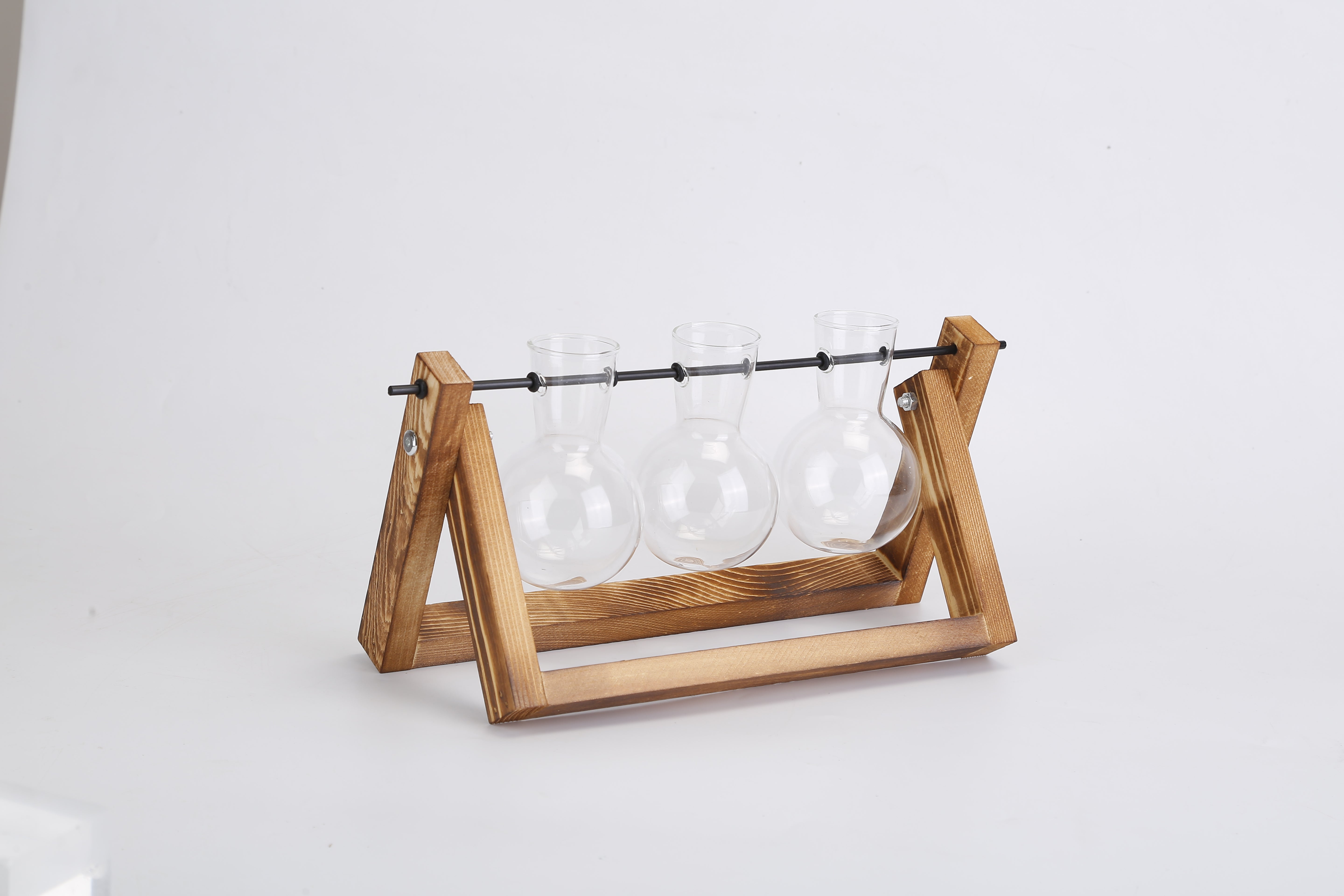 1Pc Desktop Glass Planter Bulb Plant Terrarium With Wooden Stand Air Planter Glass Vase Metal Swivel Plant Vase For Hydroponics