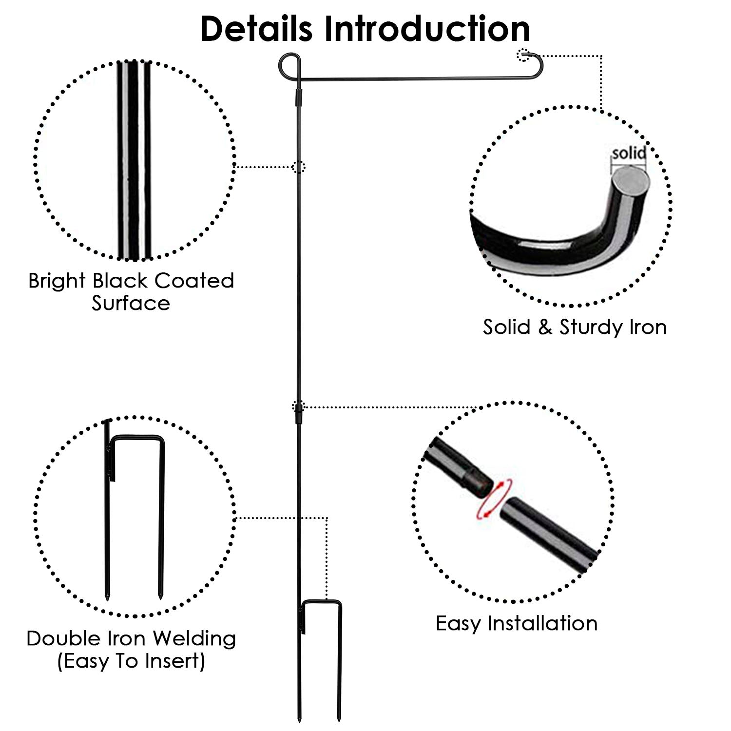 1Pc Garden Flag Stand Flagpole Weatherproof Wrought Iron Coated Yard Flag Holder For Yard Flag Party Banner Fits 11.8x17.7in Flag For Christmas Halloween Outdoor Decoration