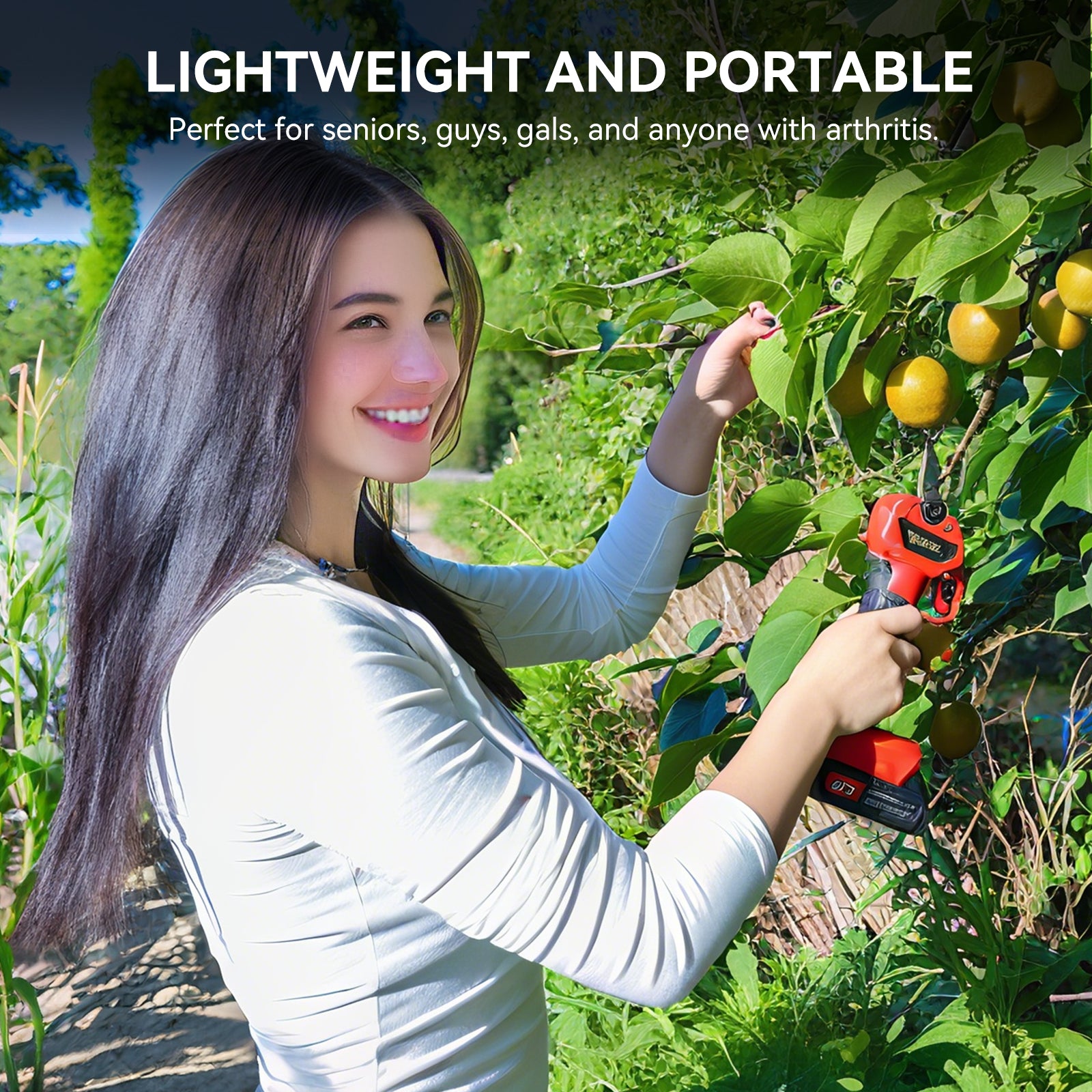 21V Cordless Electric Pruning Shears 28mm Max Cut, 2 Batteries, 6 8H Runtime, Tree Shrub Trimmer