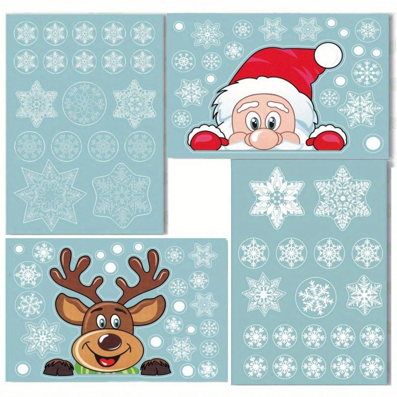 4 Sheets Of Christmas Window Clings For Glass,Santa Claus, Snowflake Wall Stickers, Static Clings, Xmas Window Decorations, Ornaments For New Year, Christmas Holiday Party Room Decorations