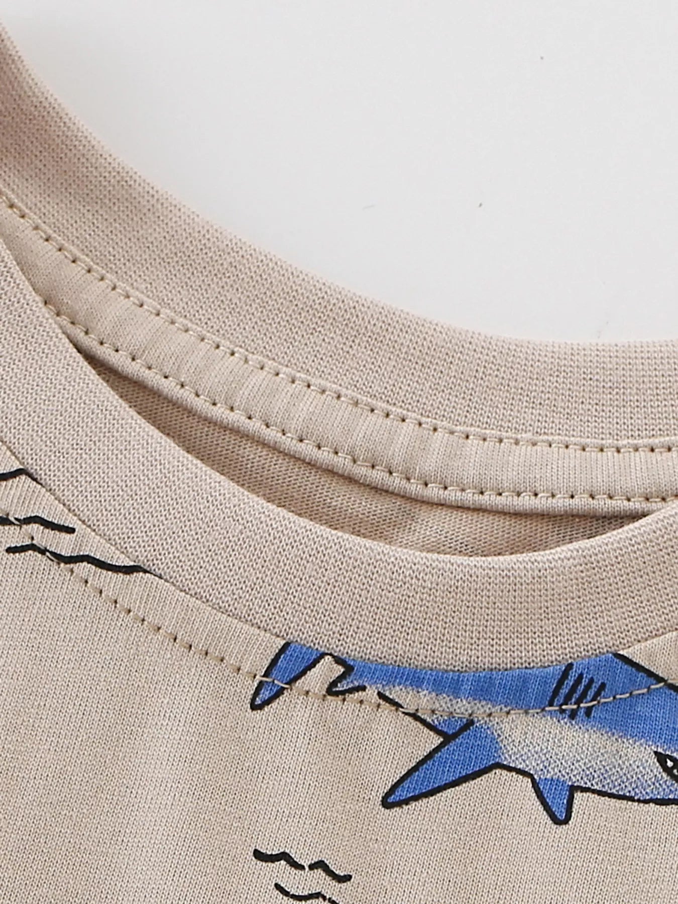 Children's Shark Print Crew Neck Short Sleeve T-Shirt