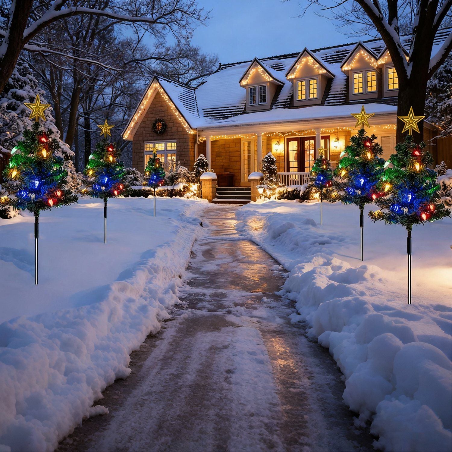 Perfect Christmas Decoration & Gift: This 8 Modes Solar Christmas Tree Pathway Light with adorable Christmas decor is an ideal decoration in Christmas to create a lively, romantic and fantastic atmosphere after inserting them in your backyard, front door, garden, making this holiday season unforgettable! It's also a perfect present gift for your parents, friends, or your neighbor.
