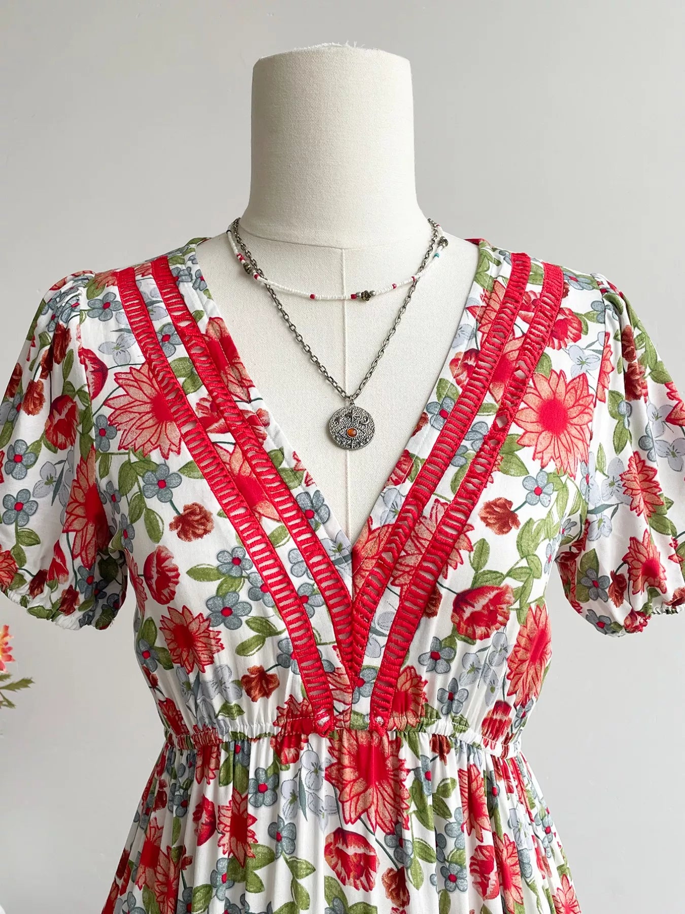 Floral Print V-Neck Ruffle Hem Midi Dress