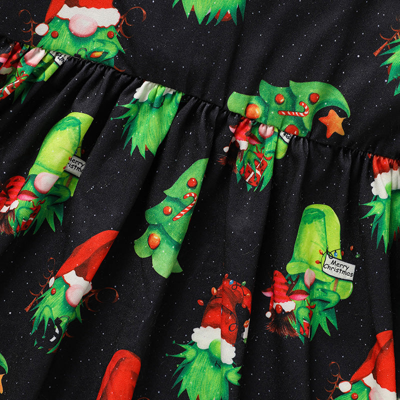 Toddler Kids Baby Girl Christmas Dress Outifts, Long Sleeves Cartoon Prints Party Dress With Heart Print Vest Coat Xmas Clothes Set