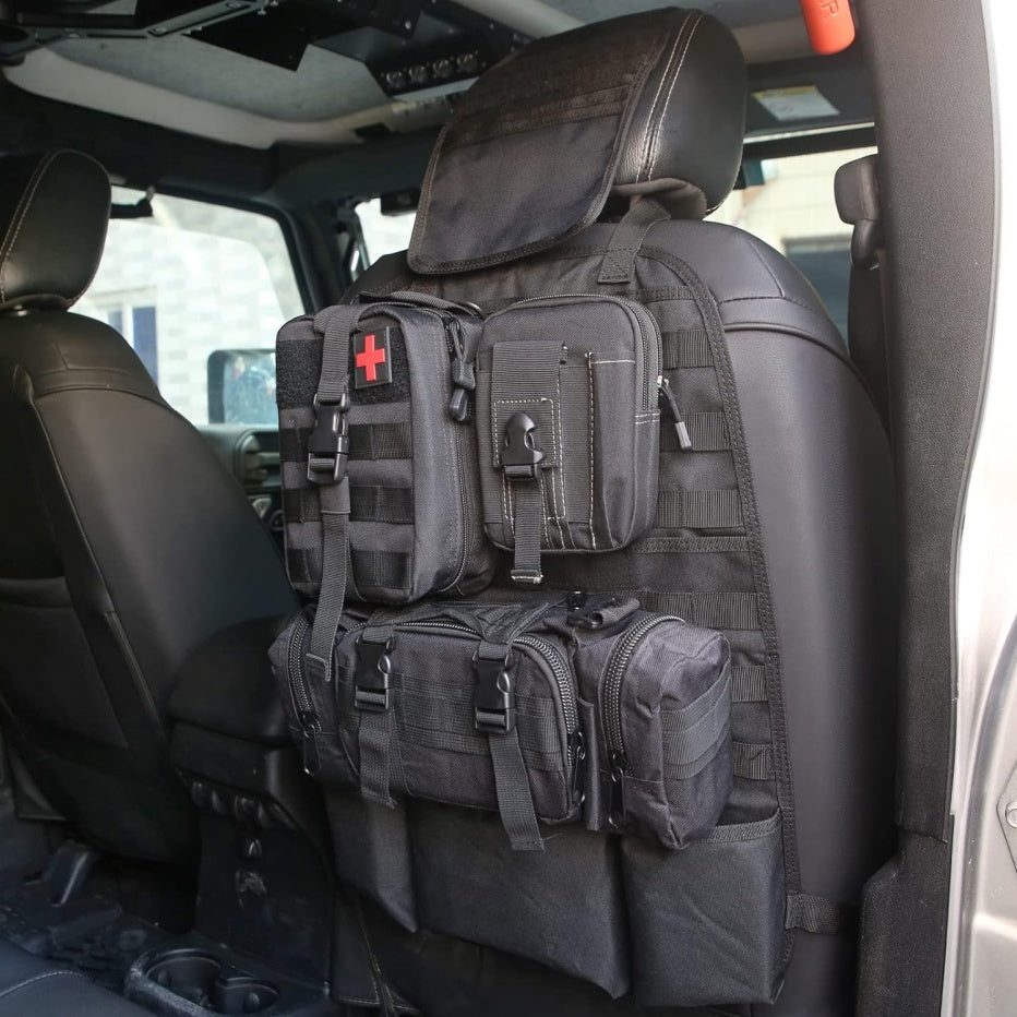 Universal Tactical Vehicle Back Seat Organizer With 3 Detachable Pouches